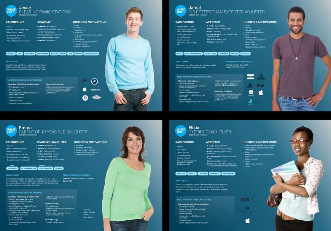 I expect most of you are aware, but just in case, personas are fictional representations of user types. They list items such as background, goals, motivations, personality traits, and associated brands.